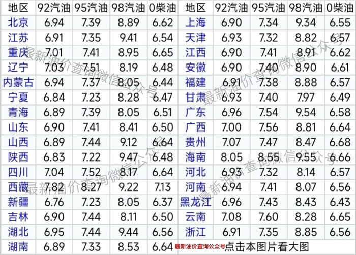 备注:云南、陕西、四川、辽宁、新疆、青海、西藏,贵州、内蒙古、黑龙江油价没有实现统一价格,