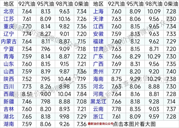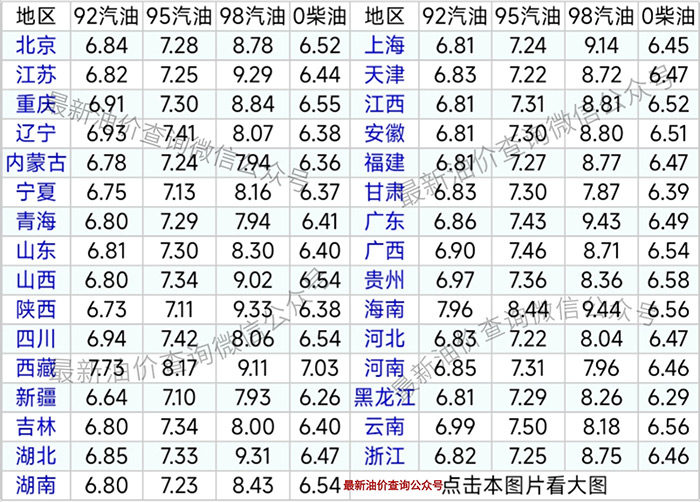 备注:云南、陕西、四川、辽宁、新疆、青海、西藏,贵州、内蒙古、黑龙江油价没有实现统一价格,